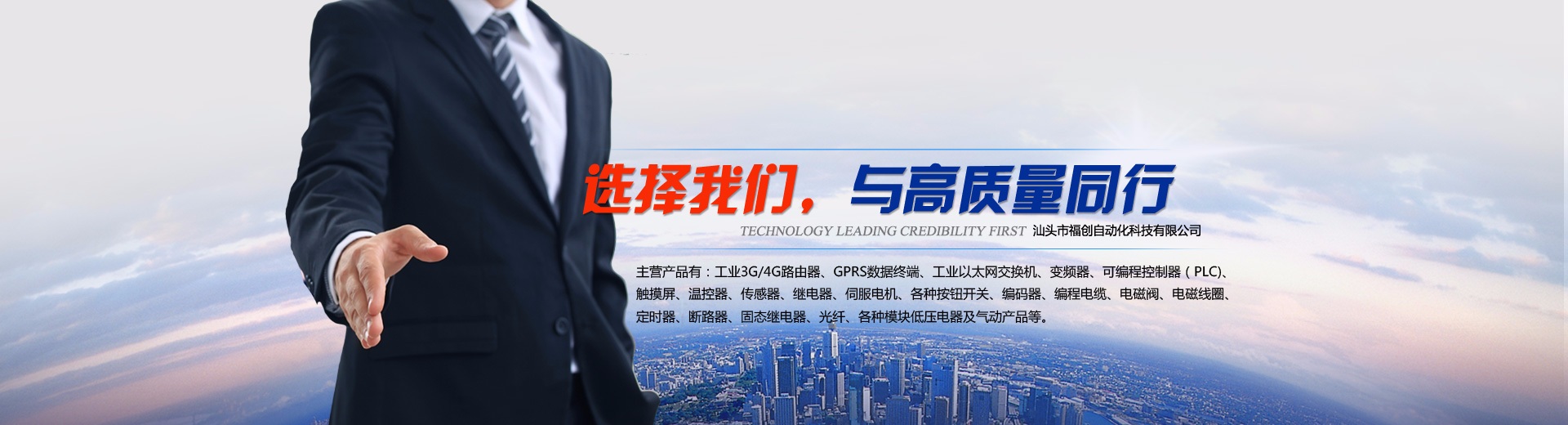 汕頭市福創(chuàng)自動(dòng)化科技有限公司是一家集自動(dòng)化元件的代理銷售與維修、自動(dòng)化設(shè)備設(shè)計(jì)制造、自動(dòng)化工程安裝改造、機(jī)電工程安裝改造、自動(dòng)化機(jī)械設(shè)備設(shè)計(jì)與制造的企業(yè)。 主營產(chǎn)品有:工業(yè)3G/4G路由器、GPRS數(shù)據(jù)終端、工業(yè)以太網(wǎng)交換機(jī)、變頻器、可編程控制器(PLC)、觸摸屏、溫控器、傳感器、繼電器、伺服電機(jī)、各種按鈕開關(guān)、編碼器、編程電纜、電磁閥、電磁線圈、定時(shí)器、斷路器、固態(tài)繼電器、光纖、各種模塊低壓電器及氣動(dòng)產(chǎn)品等。